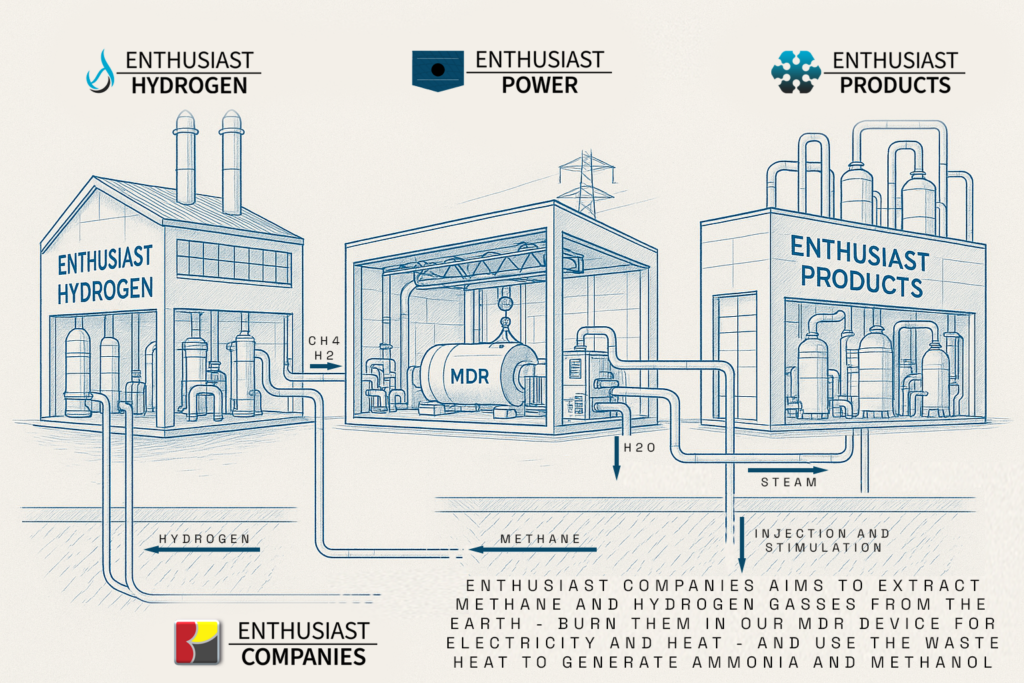 Enthusiast Products Corporation organized in 2023 is developing at-well production processes and high temperature catalysts for hydrogen reactions to ammonia, sustainable fuels, and other high value chemicals.
